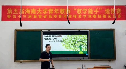在海南大学校级选拔赛中,我院蔡昊老师以《自由贸易港建设与生态文明》为参赛课程,讲解了海南省建设中国特色自由贸易港对于生态文明建设的战略意义,以及生态学知识在其中的积极作用的课程内容,赢得了评委老师的肯定,在校级选拔赛中荣获理工组三等奖。