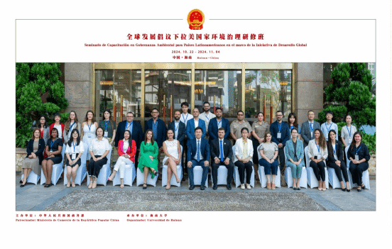 2024年10月22日,由中国商务部主办、海南大学承办的“全球发展倡议下拉美国家环境治理研修班”举行开班仪式。本次培训班是中国商务部援外培训项目,学员来自拉丁美洲7个国家共24名环境保护和政府管理相关学者和领导。
