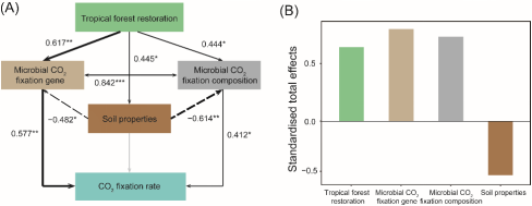 图 热带森林恢复对土壤微生物固定CO2速率的直接和间接影响