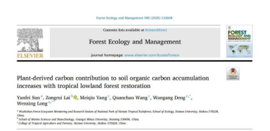 论文题目为《Plant-derived carbon contribution to soil organic carbon accumulation increases with tropical lowland forest restoration》,发表在在Forest Ecology and Management期刊,孙延菲副教授为第一作者,龙文兴教授为共同通讯作者(https://doi.org/10.1016/j.foreco.2025.122608)。