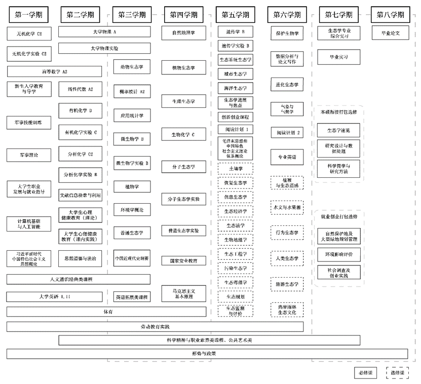 (1) 掌握现代生物学、生态学、环境科学基本知识与技能和生态恢复、生态区划、生态监测与评价、自然教育等基本方法和技能。
