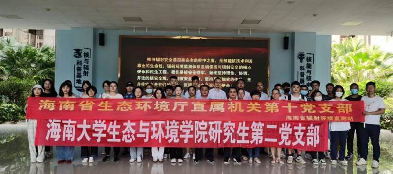 为加强党支部之间的交流与合作,拓展支部党员环境知识面,提升环保意识和科研能力,2022年6月14日上午,海南大学生态与环境学院研究生第二党支部与海南省生态环境厅直属机关第十党支部(海南省辐射环境监测站)开展了联合主题党日活动,并参观了海南省辐射环境监测站科普宣传基地。活动现场气氛活跃,省生态环境厅直属机关第十党支部同志为我院研究生第二党支部成员讲解了关于核电的一些基本知识、发展历史和经典案例,通过模型介绍了核能发电的原理,并参观了省辐射环境监测站实验室。参与活动的同志们积极主动交流,收益颇多。